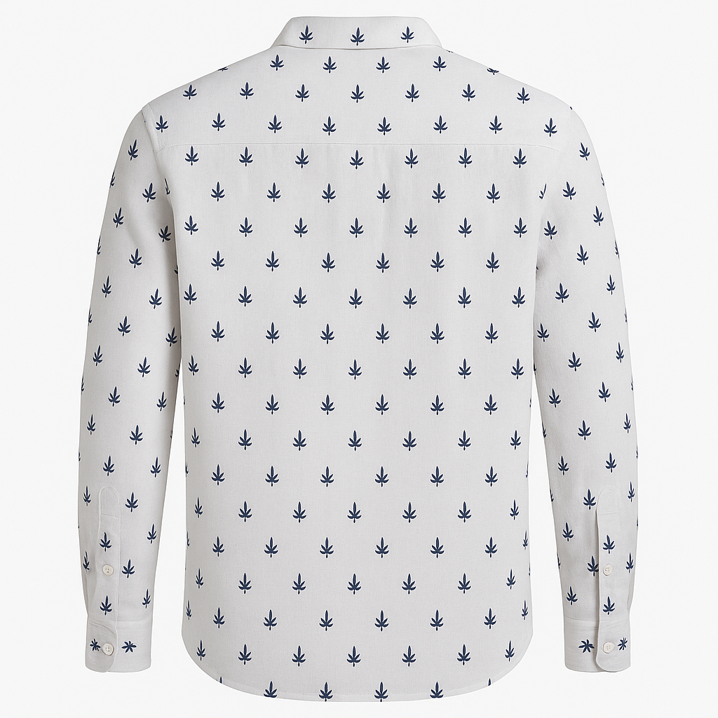 Košulja – Puro Lino bela sa sitnim plavim palmama