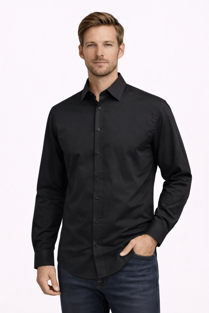 Elegantna muška košulja blago strukiranog kroja koja lepo prati liniju tela bez osećaja stezanja. Idealna za poslovne i svečanije prilike, ali i za svakodnevno nošenje uz pantalone ili farmerke.